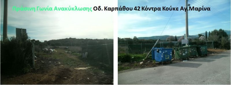 Ανακύκλωσης βρίσκονται: οδός Καρπάθου 42 (Κόντρα Κούκε-Αγ.Μαρίνα), Καρπάθου και